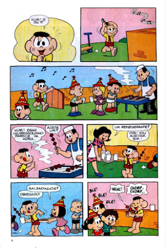 Mostro uma história em que o Cascão entrou numa festa de penetra, só para se divertir e comer. Com 10 páginas foi história de abertura de Cascão 208 (Ed.Globo,1994).